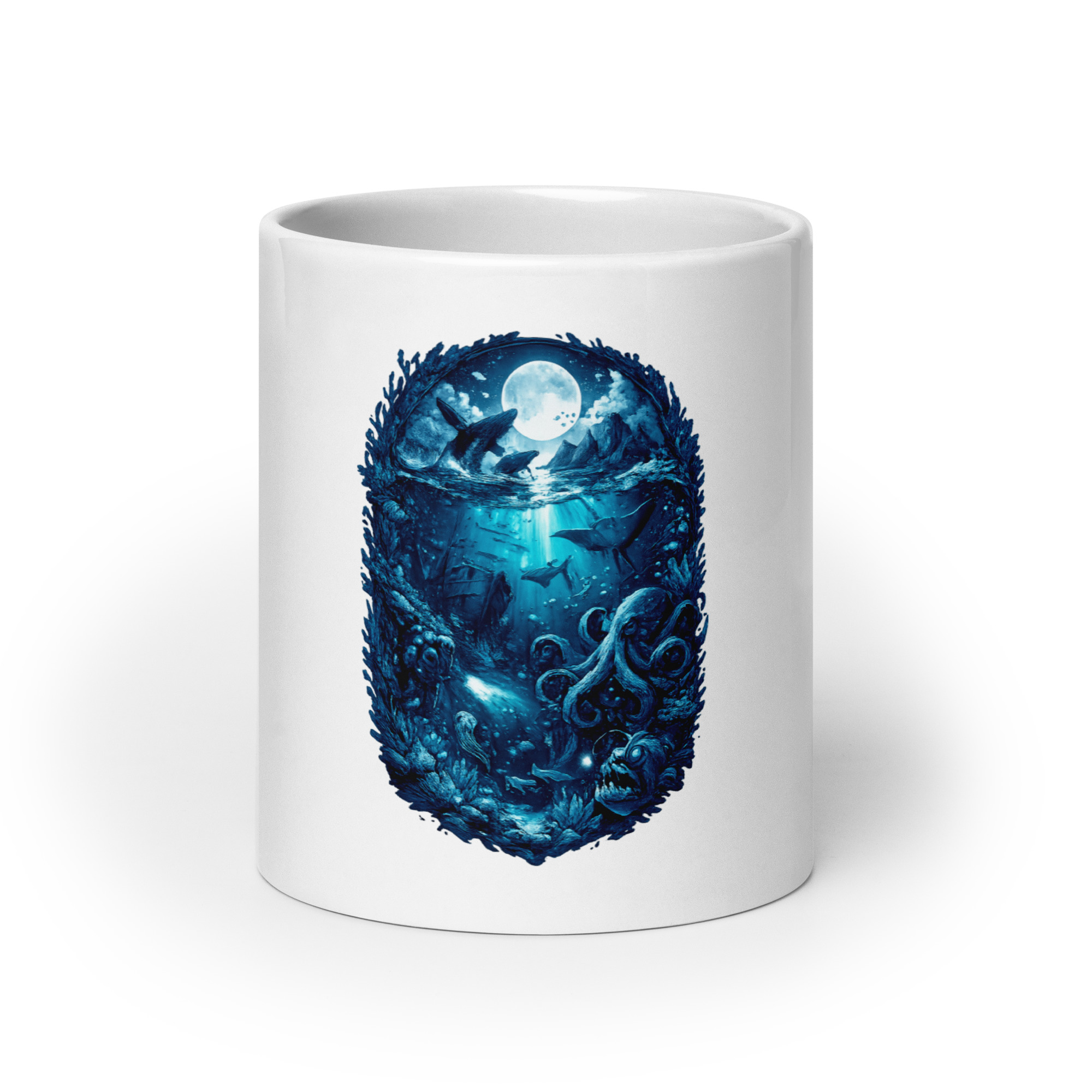 Blue World Glossy Mug adds a clean ocean inspired look to any drink. Made from durable ceramic with a smooth glossy finish, it features a vivid Blue World design that holds up to everyday use. Ideal for coffee, tea, and everything in between, it is safe for both the microwave and dishwasher and comes in multiple sizes to fit any routine.
